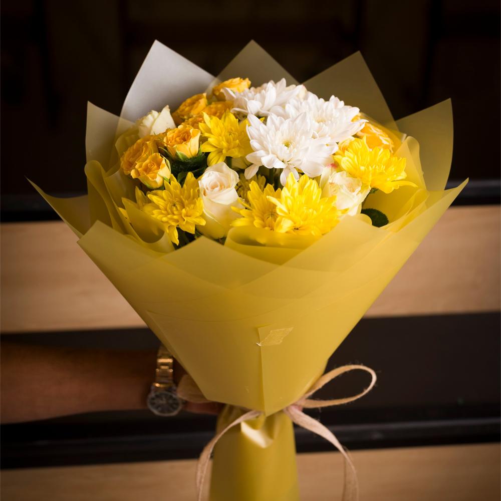 بوكيه ورد اصفر وابيض RC015 هو اختيار مثالي لإضافة لمسة من الأناقة والانتعاش لأي مناسبة. يتميز بتصميمه المميز وتناسق الألوان الرائع، مما يجعله هدية رائعة أو تزيين مثالي.