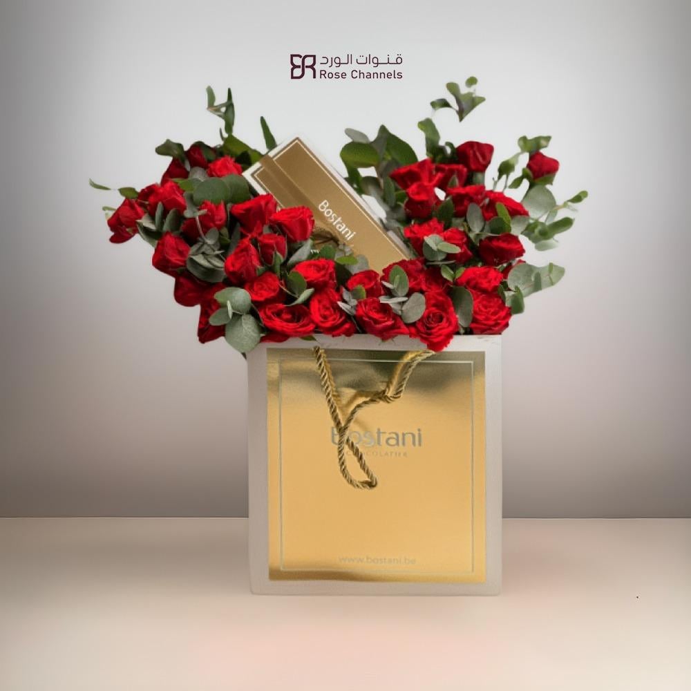 ورد شوكولاتة أحمر بوستاني هو الخيار المثالي لإضافة لمسة من الرومانسية والفخامة للمناسبات الخاصة. باقة مكونة من ورد أحمر فاخر مع شوكولاتة بوستاني الفاخرة، تجعلها هدية مميزة مثالية لعيد الحب، الأعياد، وحفلات الزفاف.
